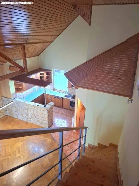 emeltre szép, kényelmes fa lépcső vezet fel, mely körbe öleli a nappalit.Itt 2
