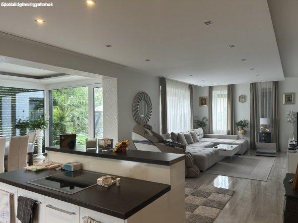 télikerttel klímával rendkívül komfortos lakótérrel udvarra nyíló télikerttel