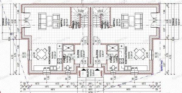 HŐSZIVATTYÚS, teraszos, 4 szobás, dupla komfortos 100 m˛-es ikerházat. A ház