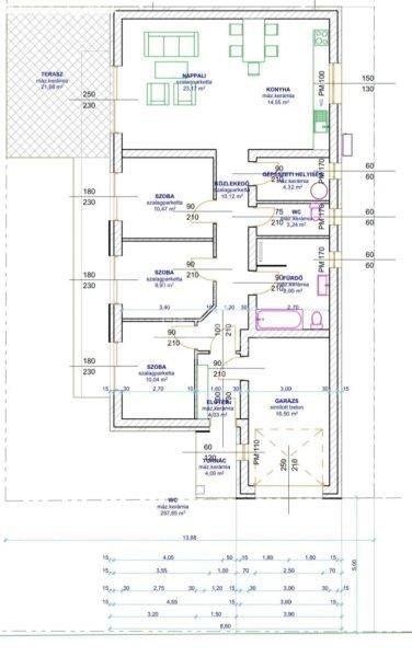 Gépészeti helyiség ? 4,32 m˛ Garázs ? 16,50 m˛ Terasz ? 21,98 m˛ Tároló/ tornác