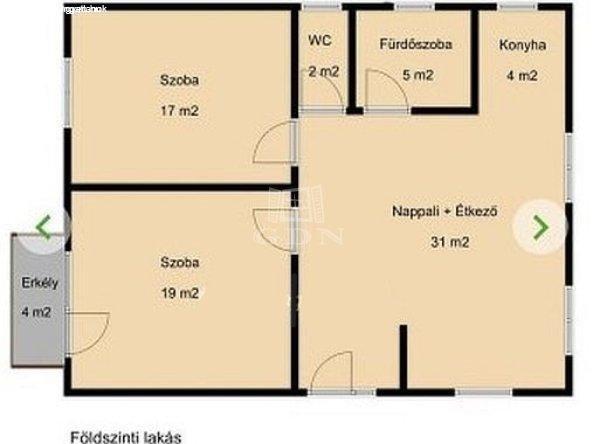 gázcirkóFöldszint (80 m˛):2 szobaKülön fürdőszoba és WCTágas nappali, apró