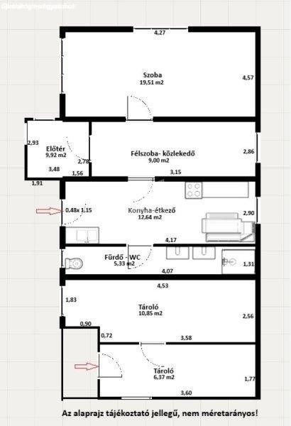 56,4 m˛? 14,22 m˛ külső bejáratú, két helységből álló, lapostetős tároló,