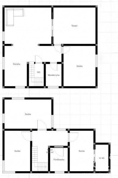 szoba/mosókonyha, terasz Emelet: 3 db hálószoba, dolgozószoba/gardrób,