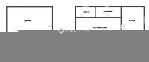 szoba, konyha, étkező+nappali, kamra, fürdő+WC-16 nm fedett terasz- elektromos