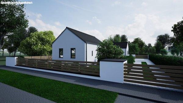 kerítés, tereprendezés az árban van már. Az ikerház 900 m2-es telken helyezkedik