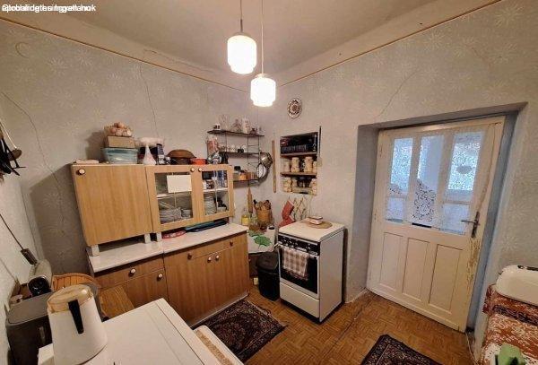 zöldövezethez, tufából és terméskőből épült 2 szobás, verandás családi ház kis