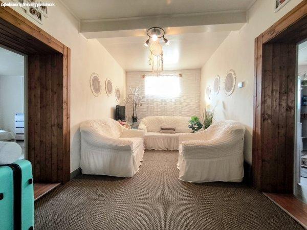 ház három szép, napsütötte, tágas szobával, világos folyosóval és kényelmes