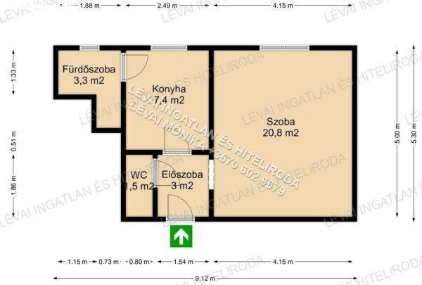 lakás részei: előszoba, 1 db szoba, konyha, fürdőszoba, külön WC.Az ingatlan