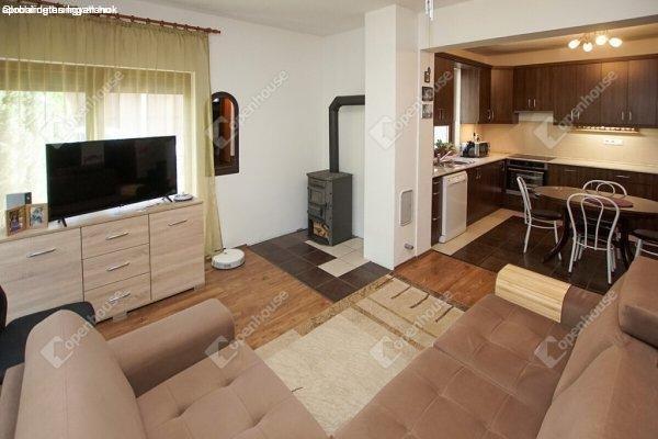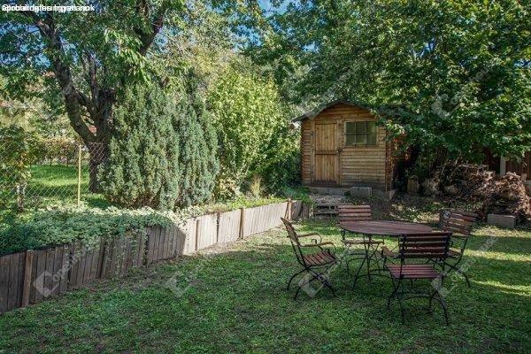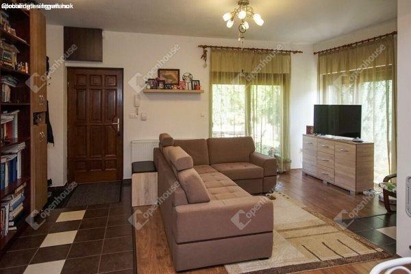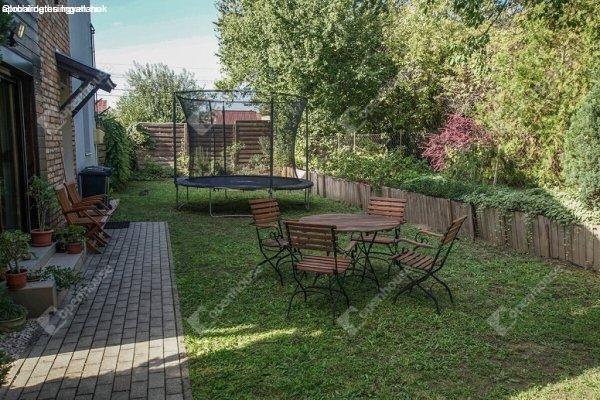 területű, kétszintes sorház legbelső, kertkapcsolatos lakása.