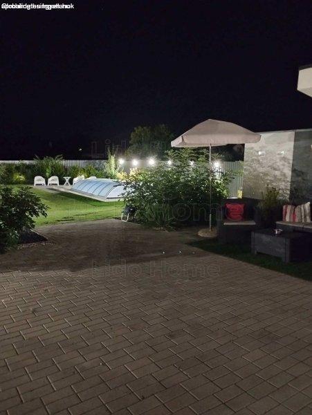 térkövezett udvarra- 3.5 x 5 méteres fedett medence pihenőrésszel az
