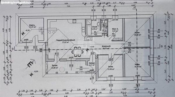 nappali, 3 hálószoba, mosókonyha, külön WC, fürdőszoba káddal- Tetőtér: egy
