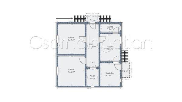 közlekedő- konyha- kamra- fürdő, WC egy helyiségben- kazánházMŰSZAKI JELLEMZŐK-