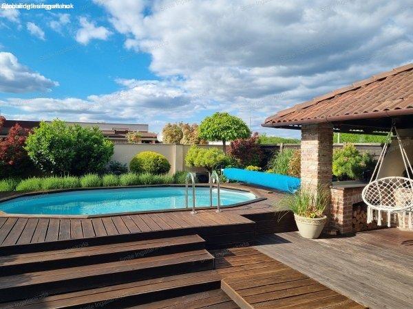 gondozott növényzettelfűthető, téliesíthető medence (6,5 x 3,5 x 1,2 m)