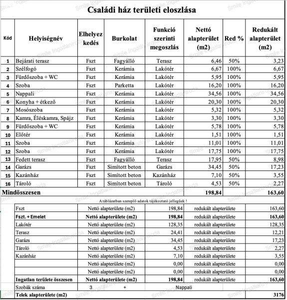 villannyal. ? Lakótér: Nettó alapterület 198,84 m˛ Redukált alapterület
