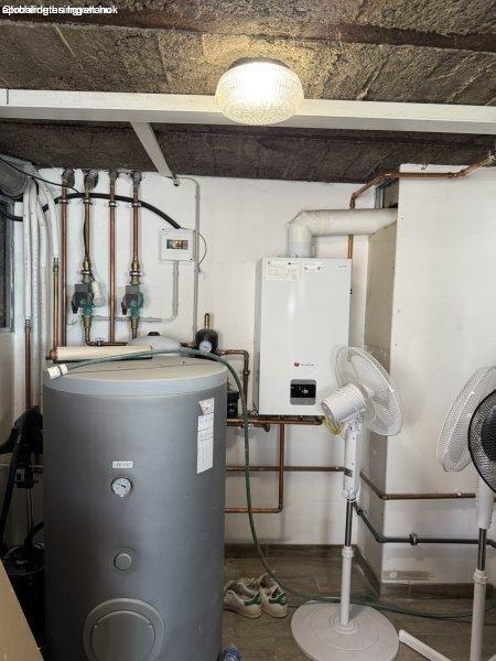 fűtésrendszer: új kondenzációs gázkazán, padlófűtésselGépészet külön