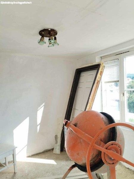elvégzett munkák: ereszcsatorna csere, belső vakolás, új műanyag nyílászárók,