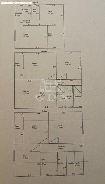 Földszint: konyha?étkező, nappali, szoba, fürdőszoba, külön WC, közlekedő,