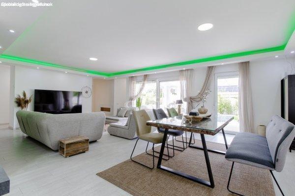 megjelenésű, dupla komfortos, kelet-nyugati fekvésű családi házat. A 2002-ben