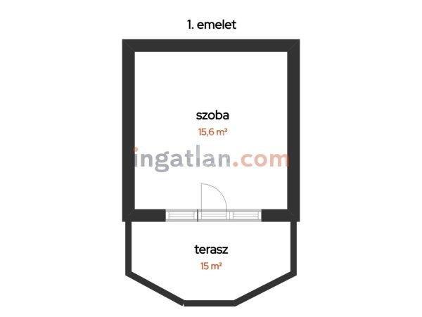 1,32m2, hátsó közlekedő 2,5 m2;Emeletszoba 15,6m2;Külön bejáratú lakás: szoba