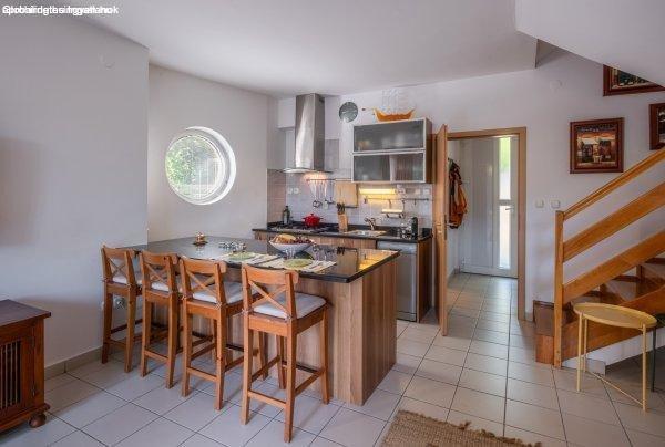 Családi házak rovaton belül a(z) "Eladó 139m2-es Sorház, Balatonlelle" című hirdetést látja. (fent)
