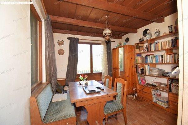 felé néző erkélyre, ahonnan az egész telek belátható.A tetőtérbe a ház hátsó