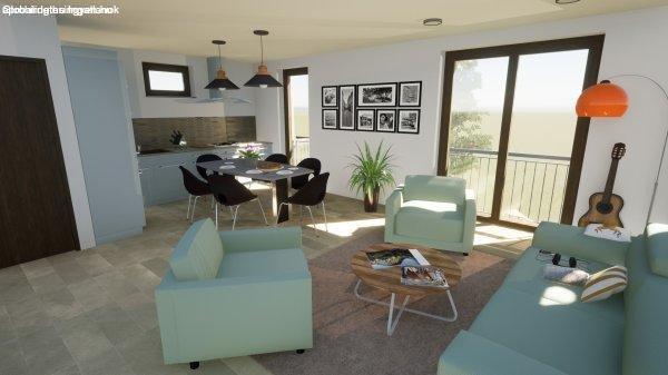 további 5 millió Ft a teraszért (opcionálisan)Elrendezés: Amerikai konyhás
