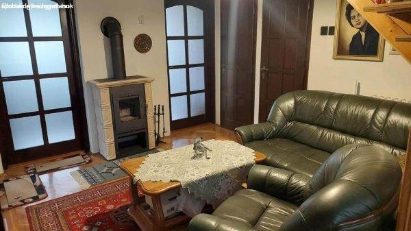építésű, jó álapotú családi ház, alatta 70 m2 alapterületű szuterénnel, 321
