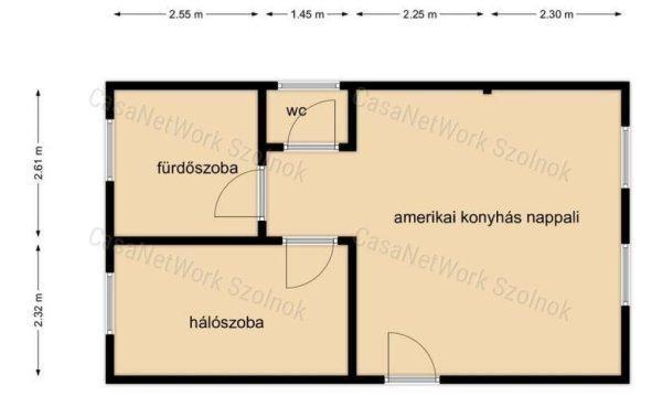 alapterülete 56 m2 amelyben a következő helyiségek kerültek kialakításra: