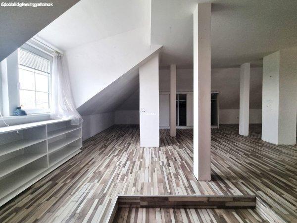 falépcső a tetőtérbe vezet, ahol egyterű, fűthetőlakótér található. A tetőtér