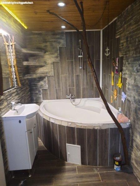beépítésre.A fűtést hangulatos, vízteres kandalló biztosítja, de klíma