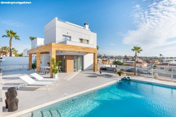 Családi házak rovaton belül a(z) "Eladó 398 nm-es Új építésű Villa, kastély Rojales" című hirdetést látja. (fent)