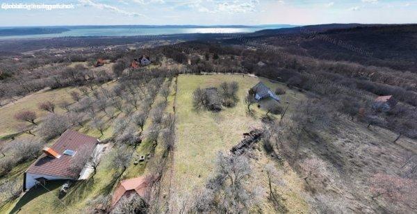 Családi házak rovaton belül a(z) "Vászoly Öreg-hegy pince-présház teljes balatoni panorámával" című hirdetést látja. (fent)