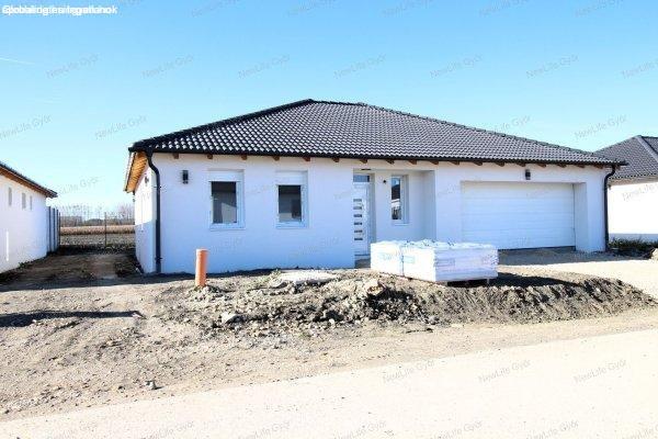 hálószoba+ nappali-étkező-konyhás újépítésű házat dupla garázzsal és 20m2-es