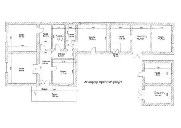 fedett terasz 15,6 nm,- pince 12,0 nm,- tároló 11,6 nm,- tároló 11,7 nm,- tároló