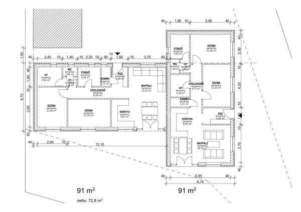részére.1.lakás: bruttó 91 nm, nettó 72,8 nm + 6 nm terasztelekterület: 400
