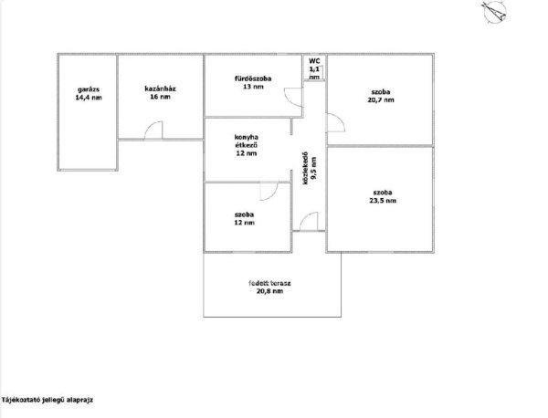 WC található, valamint 20,8 nm-ess fedett terasz, 14,4 nm-es garázs, 16 nm-es