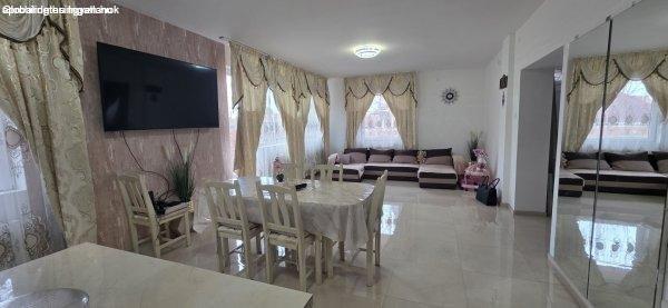 szinten van egy Amerikai konyhás nappali, 1 félszoba, 1 mosókonyha, 1