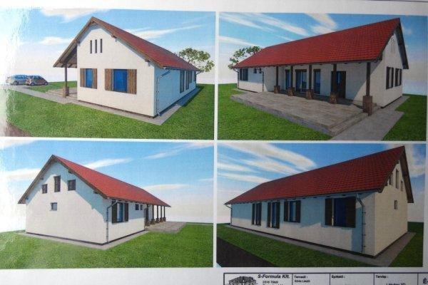 előtér, közlekedő, háztartási helyiség. A házhoz kapcsolódik egy 58 m2-es,