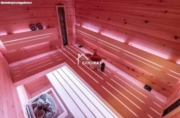 infra- és finnszauna található illetve fűthető, fedett medence hőszivattyús és