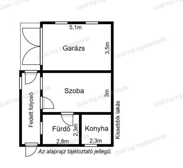 épült. Egy 13,5 nm-es szobából, egy 6 nm-es konyhából, egy 3,7 nm-es