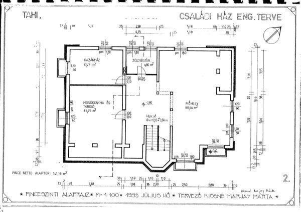 (pinceszint nettó 141,18 m˛, földszint nettó 135,92 m˛ ? bruttó 169,37 m˛,