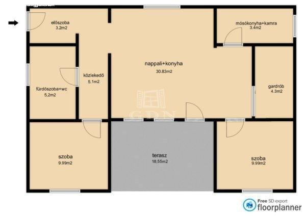 nappali?étkező?konyha egybenyíló térrel- 2 hálószoba- Gardrób / dolgozószoba-