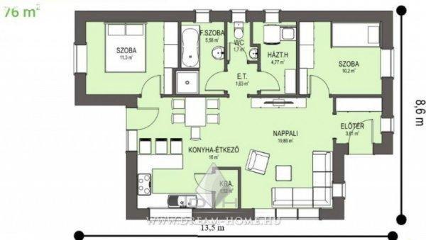 elkészülési idő garantált 10 hónap!A családi ház nettó alapterülete 76 m2, amely