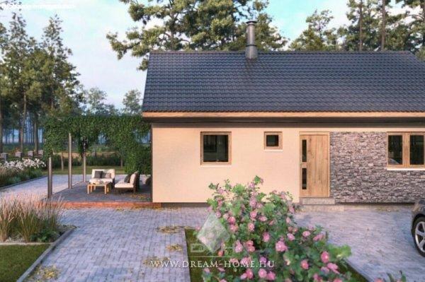 energiatakarékos házat, mely áll nappali + 2 szobából, tartozik hozzá fedett