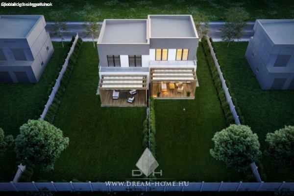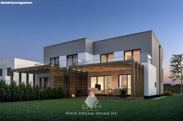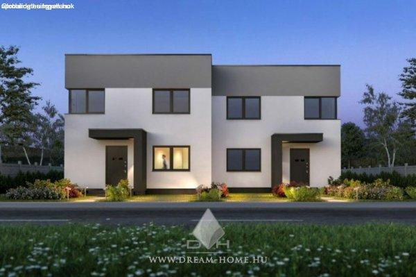mellett található ez a modern vonalvezetésű 117 nm nettó alapterületű tégla iker