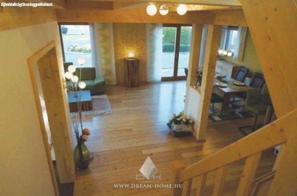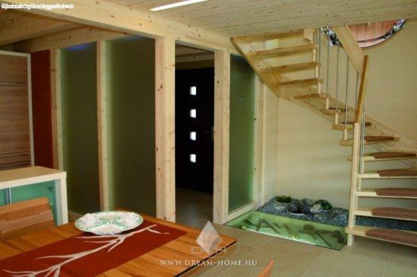 kielégít!Az alsó szint praktikusan kialakított, konyha+étkező+nappali egy