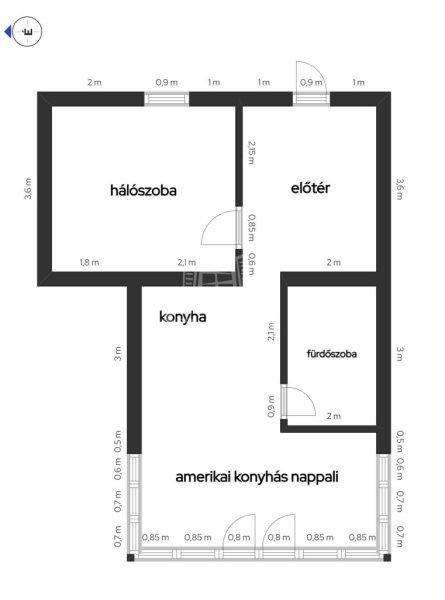 konyhás nappali étkezővel, a hálószoba és a dolgozóvá alakított előszoba. A