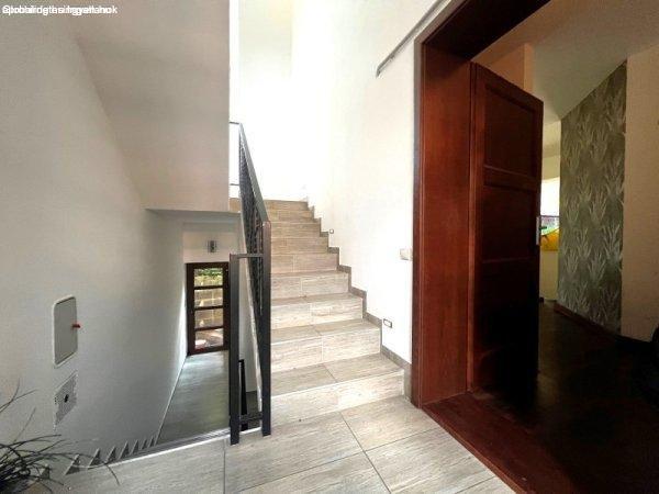beépített közel 600 nm-es intim kertet.Emelet:Az emeleti lakás nettó 82 nm-es