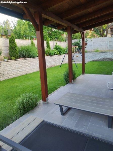 gondozott parkosított kert,- automata öntöző- és csepegtető rendszer, külön