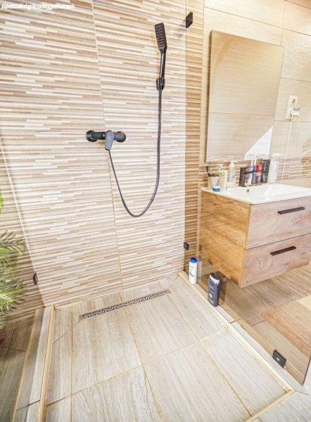 szaniterekkel, káddal, zuhanyzóval felszerelt- Hőszigetelt műanyag nyílászárók,